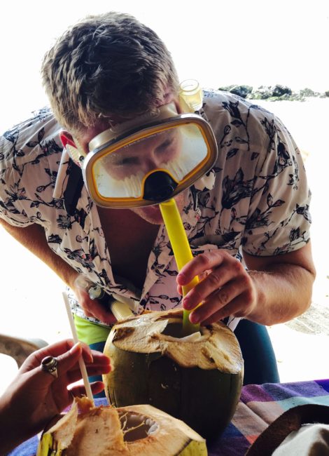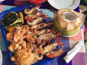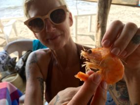 Queremos la adventura,” I said to the Mexican man whom we asked for directions. His belly jiggled and the gaps in his teeth showed as he laughed. He led us to the back road as his family waved at us from the bed of the truck. Heathyr rallied the rental car through the river and several mud pits; past cows and pigs and horses; through tunnels made of palm trees and bougainvillea, until we arrived in the small fishing village of Majahua. Under a seaside palapa, we ate fresh lobster tails cooked in garlic and butter, camarones with heads and legs still attached, fresh ceviche and ice-cold coconuts.