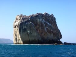 As the boat approached Witch’s Rock, I asked Gustavo how it got its name. He said that when the wind blows a certain way, people say that the rock emits a mysterious noise, akin to a cackle. As we closed in on Witch’s, I didn’t hear the noise, but it still gave me chills. The rock loomed threateningly above the water, perched on a tapered base weathered by the surging sea. It stood solitary and watchful over the deserted beach, secluded from the shore, not a shred of vegetation visible on its barren form.