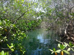 After a short stretch, the twisted trees invaded even this small haven, their barbed, tangled, branches reaching like claws into the estuary. I waded tentatively into the brackish water, suspicious of crocodiles, aware that at any moment, snapping, murderous jaws could rush out of the water and tear at my limbs. The cadaverous vegetation on the floor of the estuary bubbled to life with each step, sending gasps of air up through the water, putting my frayed nerves on edge.