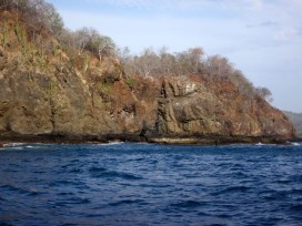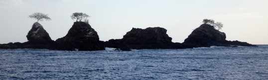 Dark, rugged cliffs towered above the water, adorned with a mantle of blackened, leafless trees. Cactus grasped ledges of jagged rock, groping like ghoulish green fingers at the sky. Sinister black birds with forked tails swooped in foreboding arcs and occupied the branches of skeletal trees; pelicans huddled on bleak outcroppings of bare rock. Strange, spooky islands rose out of the water like ghosts, hunched in beastly forms. I was terrified and amazed by the eerie landscape. It was like nothing I had seen in Costa Rica, or anywhere else in the world for that matter.