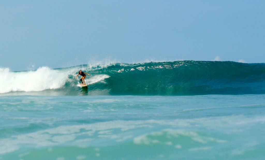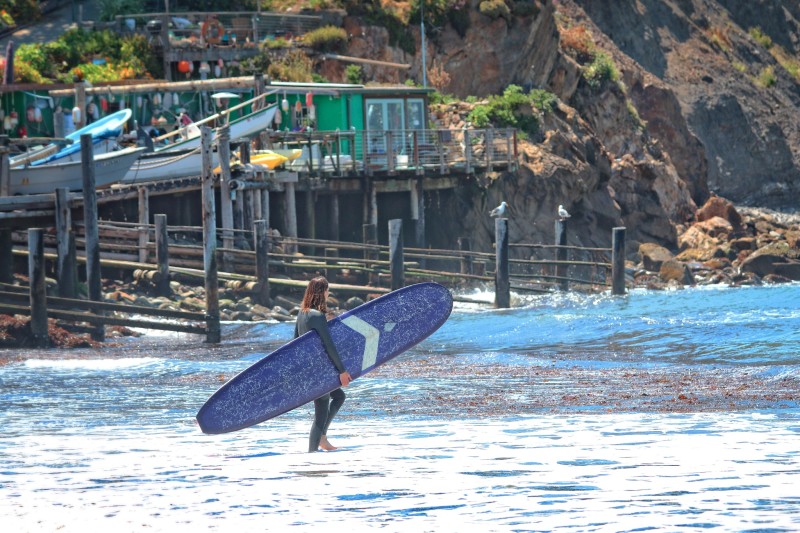 A variegated mural hangs on Tyler Fox’s bedroom wall. Reclaimed redwood from the historic Schwann mansion hugs yellow Alaskan cedar, forming a tawny rainbow of timber. Abalone inlay shimmers across the deck; salvaged driftwood flanks the tip and tail. A professional surfer, founder of Santa Cruz Waves magazine and a longtime contestant of the Mavericks Invitational, Fox has dozens of surfboards strewn around his backyard. The 9’6″ twin fin holds this special, solitary place because it is more than a surfboard: it’s a work of art.