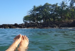 There are many delicious things – kayaking to the rock island with Leo and watching out for sharks while he spears fish; Suzannah’s homemade tarot bread and cinnamon roles; skinny dipping in the warm ocean after dark, floating on my back and watching the full moon move across the sky; surfing an overhead, lined up left with friendly ticos, and then by myself for hours; swimming up the river to pristine waterfalls and pools; hiking through the jungle with my surfboard, over ridges, across beaches and streams; climbing a tree and filling my rash guard with starfruit to bring back to the hostel; running out of clean water and finding a fresh green coconut on the side of the trail, cracking it open on a rock and feeling the sweet warm liquid run down my throat, through my veins and into my heart, drawing strength from it.