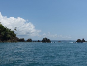 Jerson was visiting family in Drake Bay, the same place Kira and Clara were headed, and offered them some details about transport for the next morning. Kira and Clara had heard that it was one of the most beautiful parts of Costa Rica, right next to Corcovado National Park, and were taking a boat from Sierpe to a hostel situated “where the jungle meets the ocean” as described in an email that Kira read to me from a hostel correspondent. I was intrigued. Abruptly, a memory alighted to the surface of my mind – a dream I had a few nights before where I was riding on a boat and islands hued in brown and gray and gold rose up above the water. In my dream, I was in Costa Rica, and I was happy. When I woke up I reflected on the dream with contentment, but it was tinged with a touch of confusion. Isn’t Costa Rica supposed to be green? I thought, remembering the dry-looking islands.