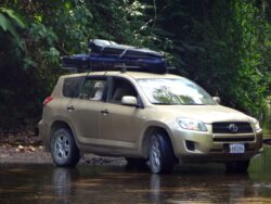 Luc arrived to pick us up and we loaded into his car for the 3 hour drive to Matapalo. At least 2 hours of the drive were on bumpy dirt roads, across rickety looking “bridges” that consisted of a wobbly wooden plank for each tire, through rivers that engulfed the wheel well. Leo assured us this was nothing, that cars regularly got taken down the river each rainy season but only when the water levels were much higher.