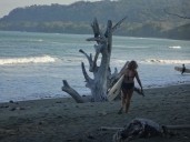 Michelle warned me not to be deceived by the apparent comfort of Mil Flores. Always use a flashlight at night, she advised me, there are pit vipers in the yard. We stayed up talking for the rest of the evening, and the next morning scored fun surf all to ourselves. The heat of midday was oppressive, suffocating, and the only thing to do was sit in the river. We walked down a short path from the house to the river mouth, dammed with sticks and boulders to form a shallow swimming hole overlooking the ocean, a natural infinity pool shaded by a cathedral of flowering trees. We sandbagged there for hours, giddy with the pleasure of coolness, and then returned to the house to make dinner. We invited Leo, Nicole, and Luc over for a bountiful feast of cheese burgers, sautéed greens, and yucca fries seasoned and cooked in coconut oil. We dubbed the platter of fries the “yucca mountain,” which seemed silly in its sheer size but which we depleted with a ravenous vigor that none of us could quite believe. Even little Pinnochio, named after Suzannah’s dream that he became a real boy, got to partake. He happily gobbled up a handful of raw meat for dinner.