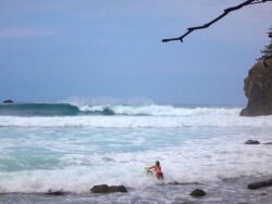 We drove deeper into the Osa to a spot that we had written off because it was heavy, frightening, rocky, dangerous and empty. I had hoped to have a reason for lugging that heavy board bag around and this was it, I had my 6’6 step up board in hand. I couldn’t wait to get out there. It was everything I wanted it to be, and more – more intense because it burned with the fire of my frustration, a vibrant splash of color on the bland canvas of disappointment. When we had checked it previously, I had been too scared to paddle out, but now I charged forward eagerly into the gauntlet. And I found that despite my doubts, I could do this, could mix together all of the experiences, failures, successes, intuition and knowledge that I have accumulated in my years of surfing – and along with a dash of brazen courage – discover what this wave demanded and meet the challenge. I was reminded that within every trial is an opportunity for change, growth, or maybe simply a contrast for some dazzling creation of the future as we continue to paint our lives.